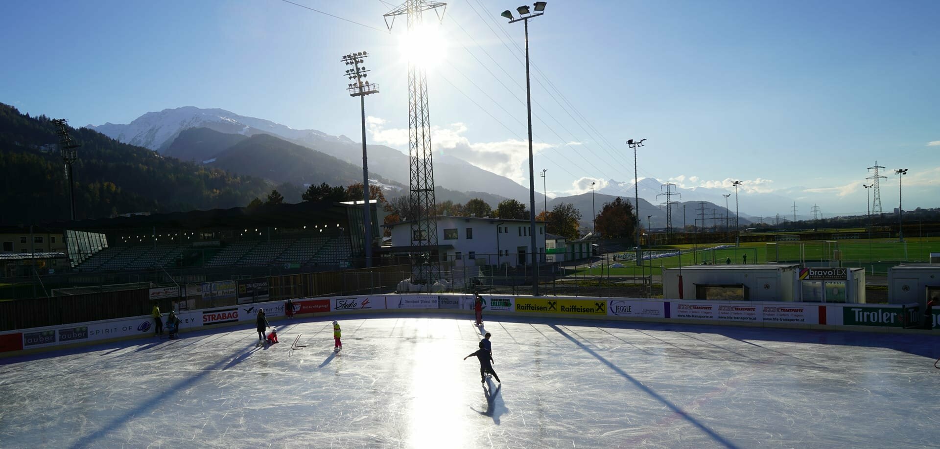 Insgesamt 1800 m2 Kunsteisfläche laden begeisterte Kufenschwinger*innen am sonnigen Eislaufplatz in Wattens dazu ein ihre Runden zu ziehen. Schlittschuhe und Lernhilfen können direkt vor Ort ausgeborgt werden!