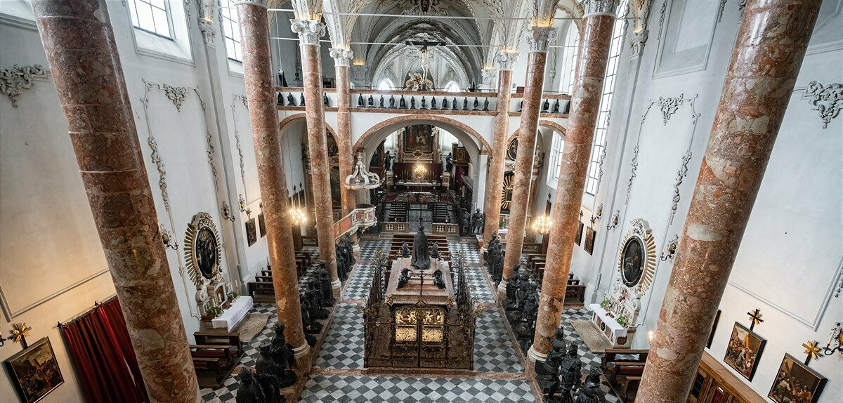 Mit dem beeindruckenden Grabmal Kaiser Maximilians – flankiert von den sogenannten Schwarzen Mandern – der Ebert-Orgel und der Silbernen Kapelle ist die Hofkirche (1553 – 1563) eines der bedeutendsten Denkmäler in Tirol.