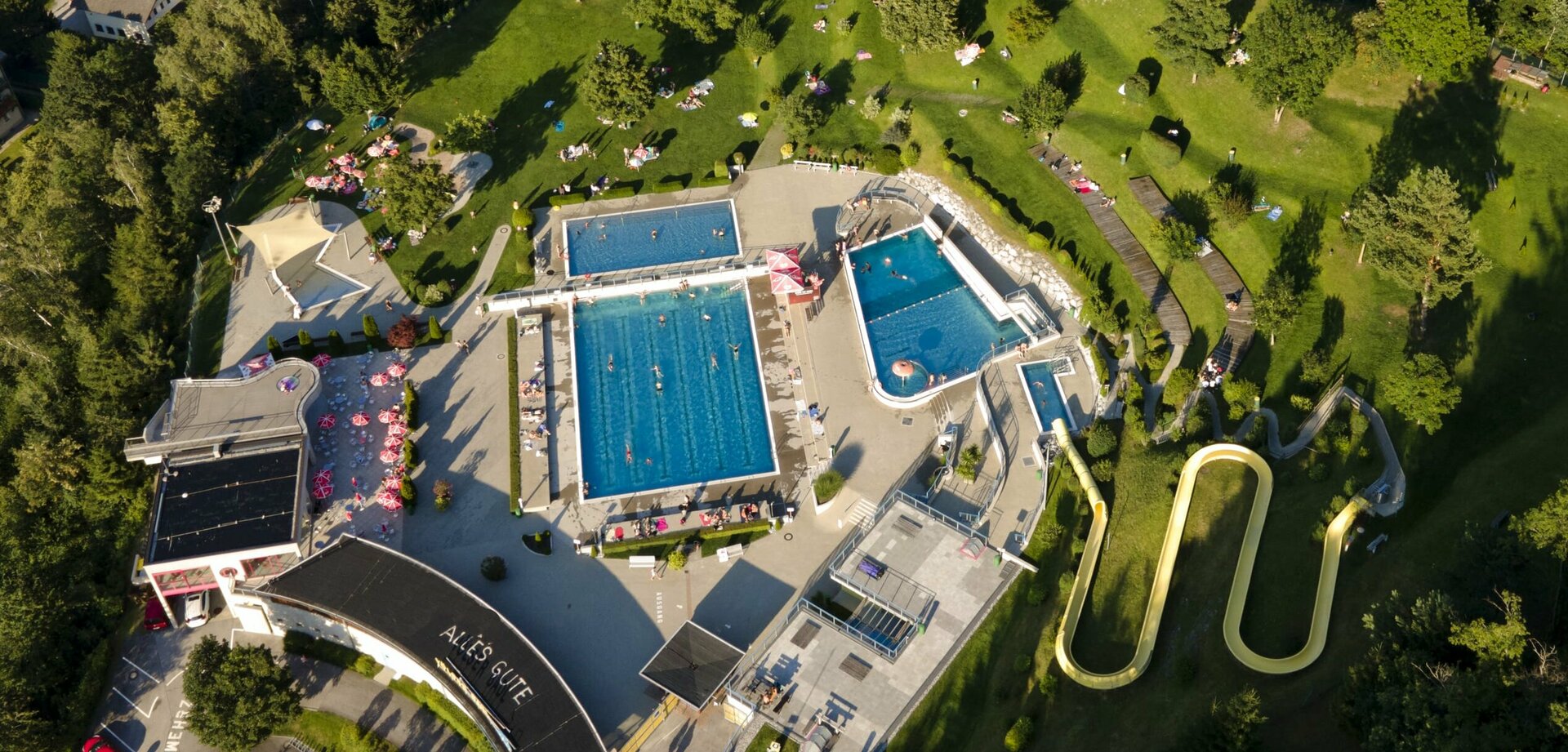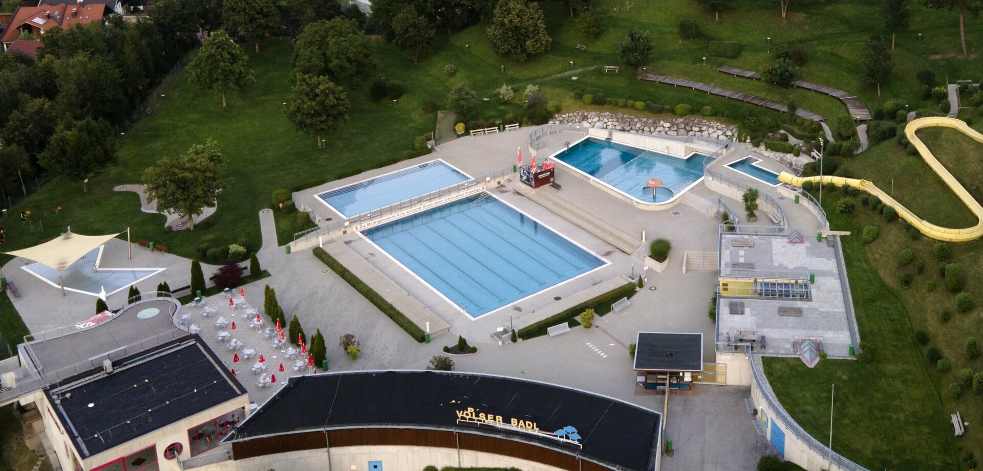 Auf dem reizvollem, zentral gelegenen Platz unterhalb des Blasiusberges befindet sich das Freischwimmbad. Der sonnige 12.000 m² große Hang wird durch Terrassen in mehrere räumliche Bereiche aufgeteilt. Im Wesentlichen gliedert sich das Badl in ein wettkampffähiges Sportbecken mit angrenzendem Lehrschwimmbecken und einem Kinderbereich mit großzügig angelegtem Spielebach. Ein Erlebnisbecken mit verschiedenen Attraktionen sowie eine Rutsche runden das Angebot ab. Das Schwimmbad - Cafe bietet neben Speis und Trank eine Aussichtsterrasse mit Panoramablick.